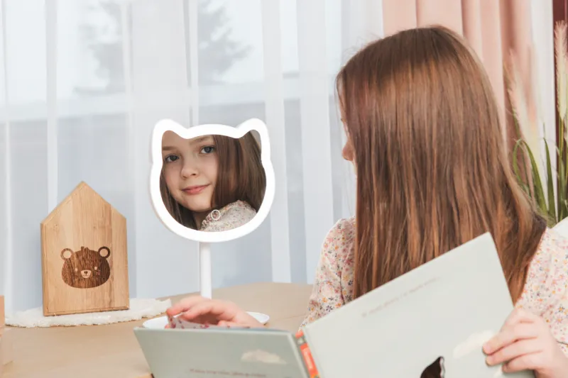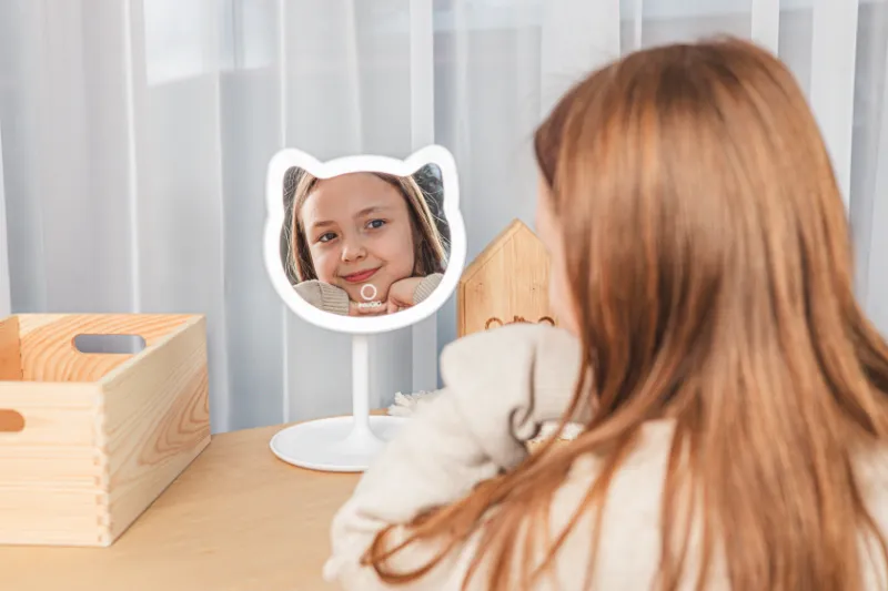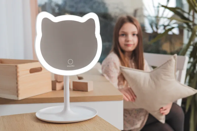 The GIOperfect White Cat mirror is safe to use because it runs on batteries (3 x AAA) and is wireless, so the little princess can move it to any place.
